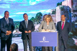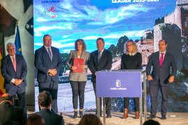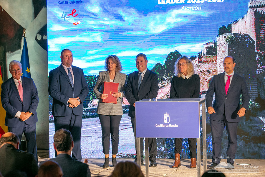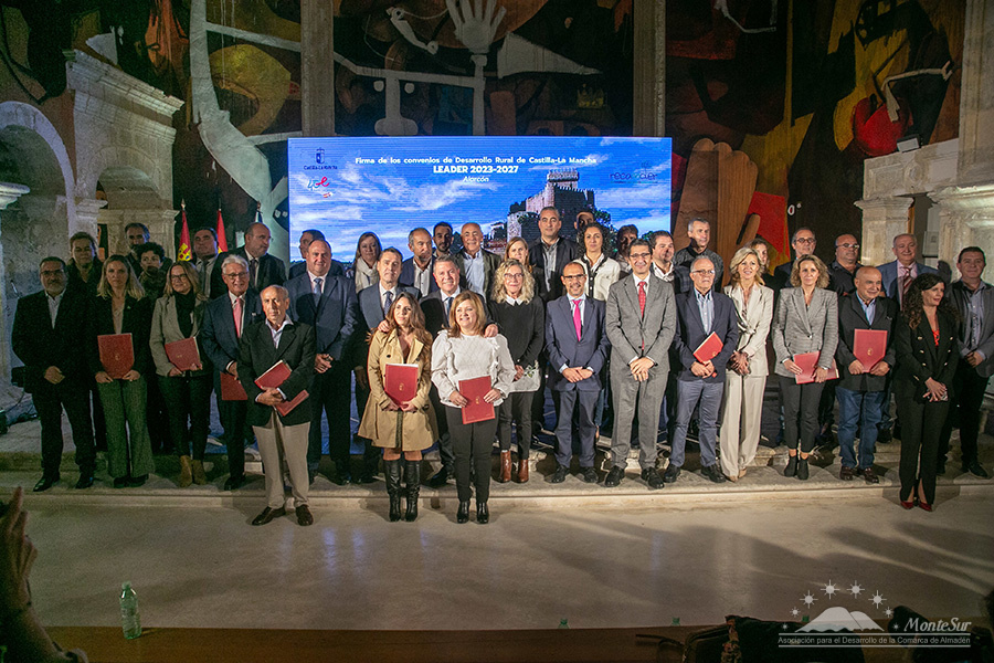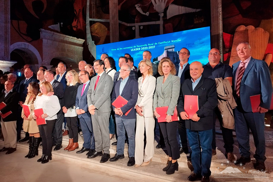 La presidenta de MonteSur y alcaldesa de Almadén, Raquel Jurado, firmó este lunes el convenio de asignación de fondos Leader para la nueva Programación de Desarrollo Rural 2023-2027 en un acto celebrado en Alarcón (Cuenca) con el presidente de la Junta de Comunidades, Emiliano García-Page, y el consejero de Agricultura, Ganadería y Desarrollo Rural, Julián Martínez Lizán, junto al resto de presidentes de los 29 Grupos de Desarrollo Rural de la región.