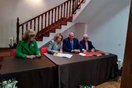 La presidenta de MonteSur, Raquel Jurado, firmó este lunes el convenio de asignación de fondos LEADER para la nueva Programación de Desarrollo Rural 2023-2027 con el presidente de la Junta de Comunidades, Emiliano García-Page, y el consejero de Agricultura, Ganadería y Desarrollo Rural, Julián Martínez Lizán